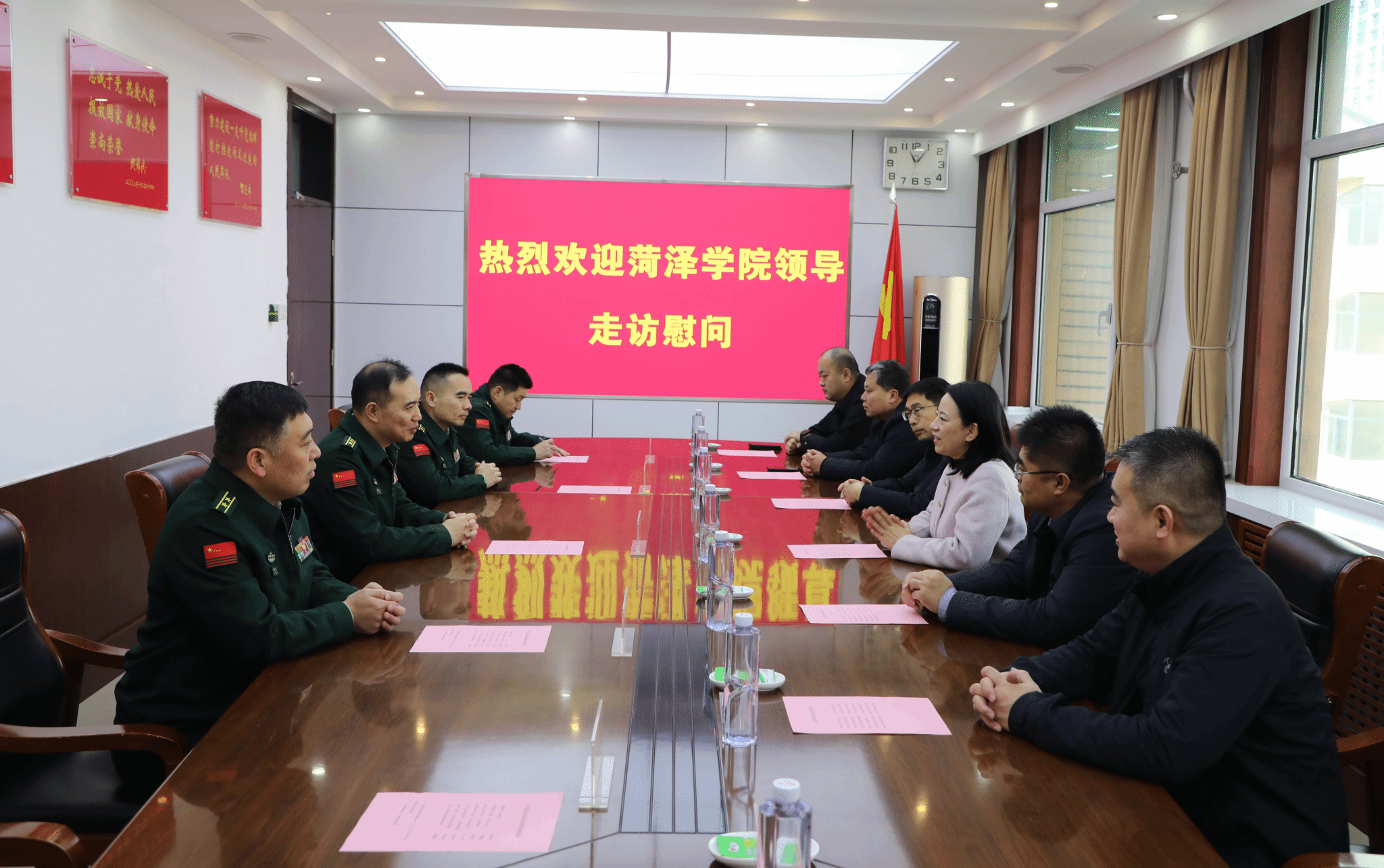 在新春佳节即将来临之际,2月12日上午,我校党委委员、副校长曲相艳一行赴武警菏泽支队开展新春拥军慰问活动,送去节日祝福,共叙军民鱼水情。座谈会上,曲相艳代表全校师生向武警菏泽支队领导和全体官兵致以节日的问候和崇高的敬意,对部队一直以来对我校各项工作的支持和帮助表示衷心感谢。希望武警支队全体官兵一如既往地关心和支持我校发展和建设,学校将继续发挥教育资源和人才优势,进一步做好拥军工作,为部队输送更多优秀人才,...