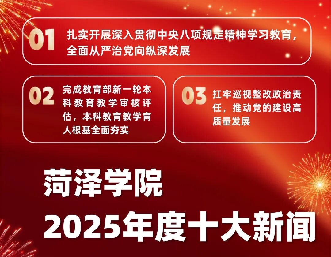 2025年是“十四五”规划收官之年,也是“十五五”规划谋篇布局之年。一年来,学校以习近平新时代中国特色社会主义思想为指导,贯彻党的二十大和二十届历次全会精神,落实全国、全省教育大会精神,紧紧围绕“12359”发展思路,开拓进取,奋发有为,在建设特色鲜明的高水平应用型大学新征程上阔步前进,各项事业稳步发展,多项工作取得了新突破,开创了新局面。现推出学校2025年度十大新闻,让我们共同回顾2025年的改革发展成就,见证属于每一个菏院人的高光时刻与奋进足迹。...