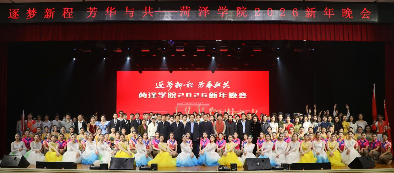 岁序常易,华章日新。12月30日晚,由党委宣传部主办、音乐与舞蹈学院承办的菏泽学院2026新年晚会在我校艺术中心演播厅精彩上演。学校党委班子成员和师生代表欢聚一堂迎接新年。晚会在民乐合奏《春节序曲》中拉开序幕,激昂澎湃的旋律奏响了新年的号角,传递了希望与祝福。歌曲《花开千万朵》《繁华依旧》《天下乡亲》以温暖真挚的情感、铿锵有力的声音,唱响了菏院人对生活的美好祝愿。舞蹈《一盏映心红》《脊梁》《一条大河》以灵动舒展、...