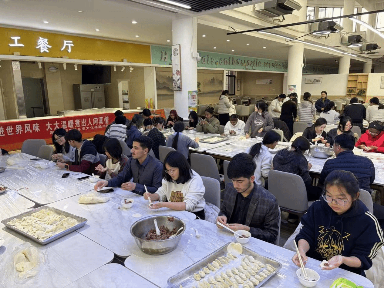 12月20日下午,国际交流学院举办冬至包饺子文化交流活动。中外师生齐聚一堂,通过亲手包制中国传统美食,共同感受冬至节气的独特魅力,促进了跨文化交流与友谊。活动现场气氛热烈,欢声笑语不断。师生们主动担当起“文化使者”和“技术指导”,从擀皮、放馅到捏边,一步步向来自不同国家的留学生们耐心演示饺子的制作技巧。国际学生们认真观摩,积极尝试,从最初的手法生疏、饺子形态各异,到逐渐掌握要领、包出有模有样的饺子,整个过程中充满了互助与学习的热情。...