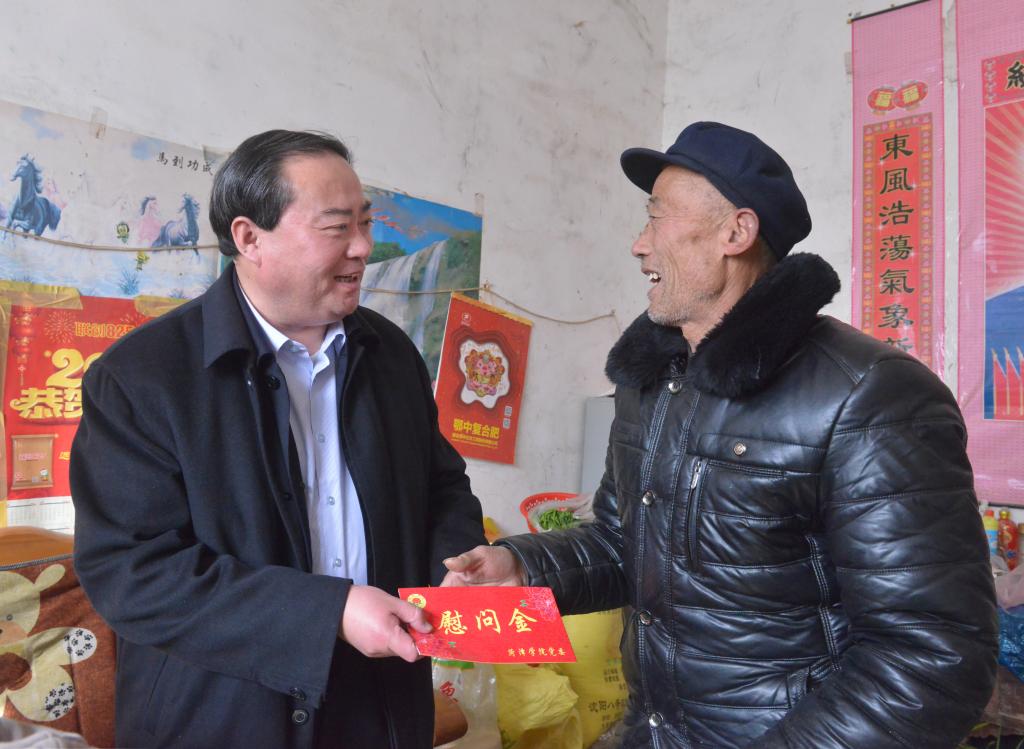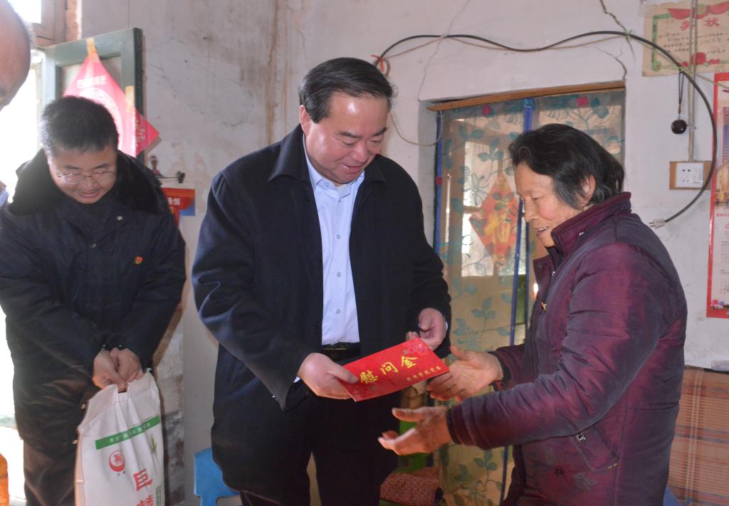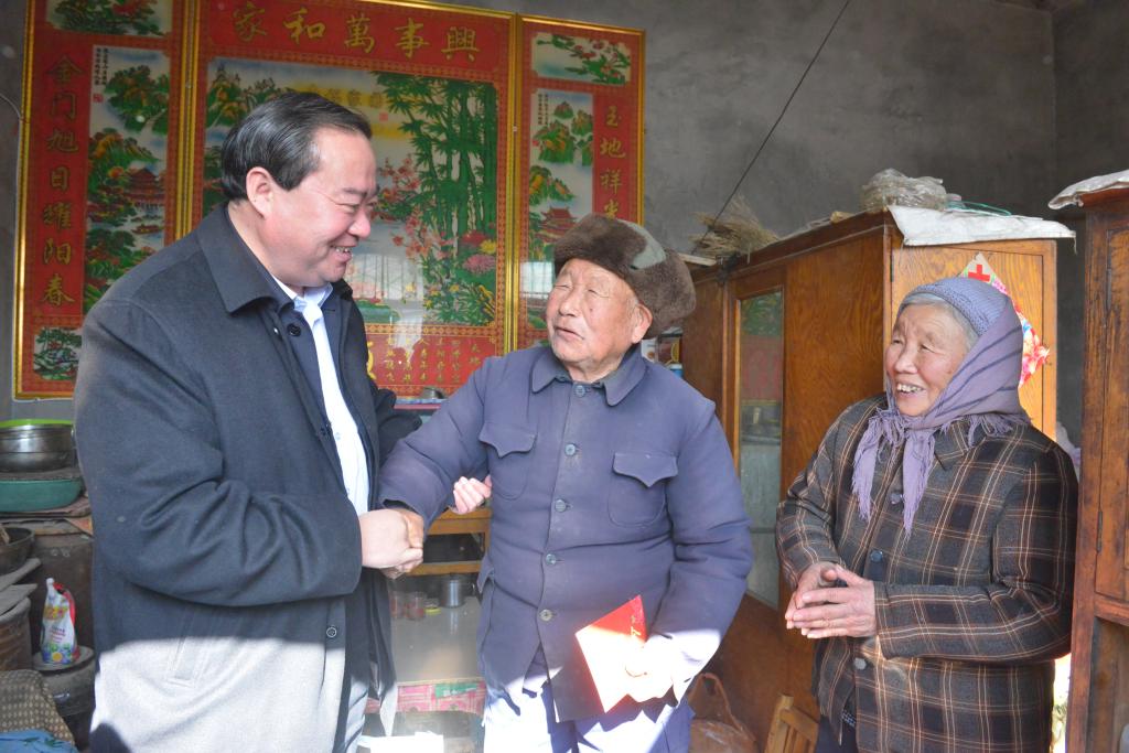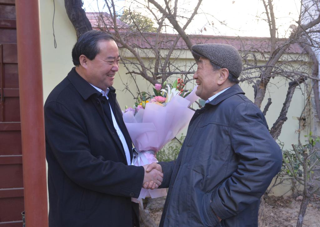 新春佳节即将来临之际,我校党委书记王焕良于1月22日在有关部门负责人的陪同下,走访慰问离退休老同志、家庭困难学生并到我校“第一书记”帮扶村看望慰问困难老党员。在退休老干部韩广洁、张存金、赵普家里,王焕良代表学校党委,感谢老同志为学校改革发展做出的突出贡献,向他们通报了我校今年工作取得的成绩,征求了他们对学校新年工作的意见和建议,并给他们提前拜年,祝福老同志身体健康、家庭幸福。三位老同志表示,学校今年很多方面的工作取得了历史性突破,发展前景很好,广大离退休教职工非常满意,并表示感谢党委对离退休老同志的关心,一定发挥余热为学校建设发展贡献力量。