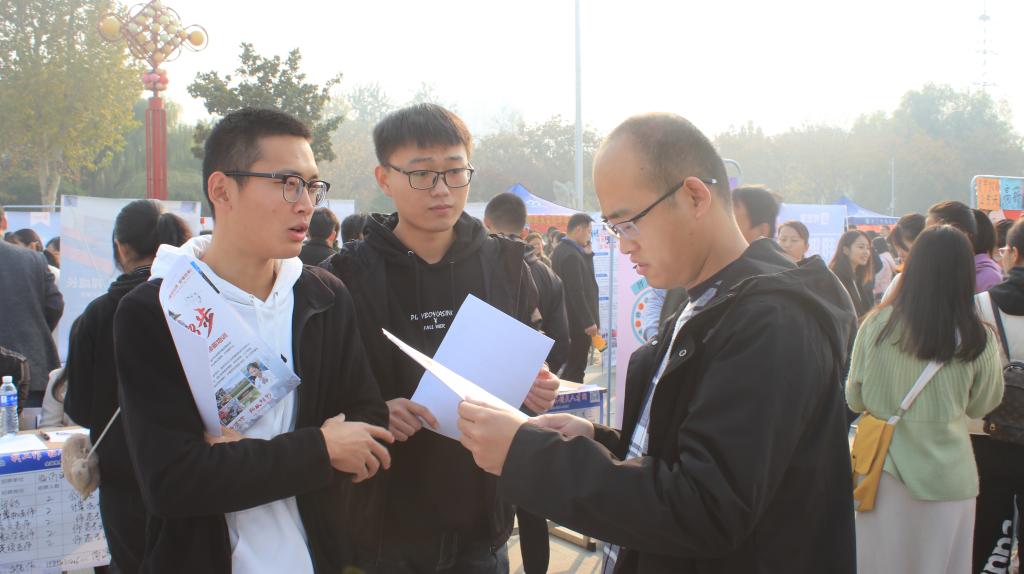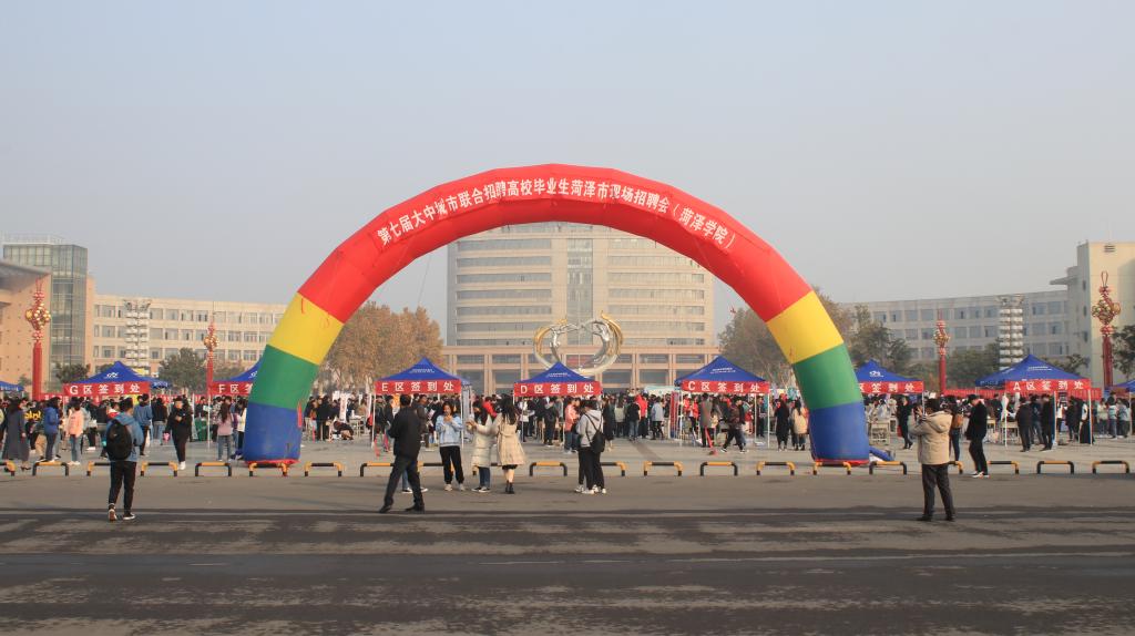11月16日,由菏泽市人力资源和社会保障局主办,菏泽市人力资源市场承办,菏泽学院协办的以“城市联动,精准服务”为主题的第七届大中城市联合招聘高校毕业生菏泽专场招聘会在我校综合楼前广场举办。我校党委委员、副院长黄济民,菏泽市人社局党组成员、就业办主任李迁,菏泽学院招生就业处处长赵庆华等领导莅临招聘会现场进行指导。