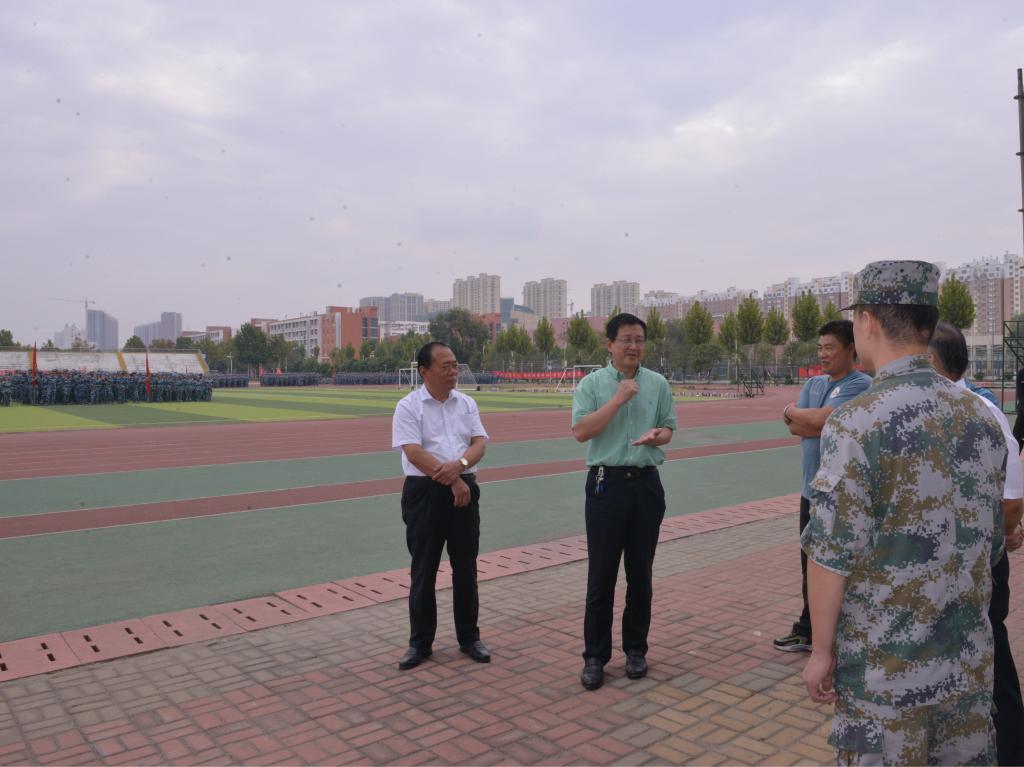 军训场上,受训新生身姿矫健、士气高昂,步伐整齐、口号嘹亮。校领导一行观看了新生训练,现场与军训教官、受训新生和带队老师进行交流,详细询问军训工作开展情况,对大家的辛勤工作表示赞扬与肯定。