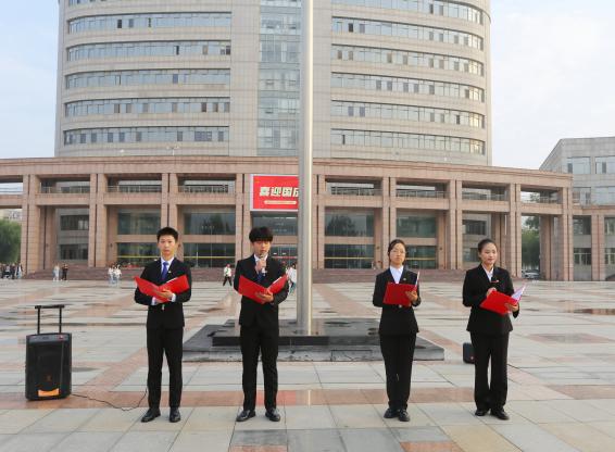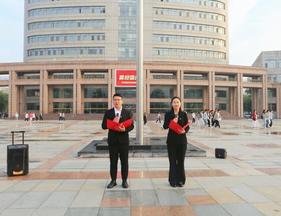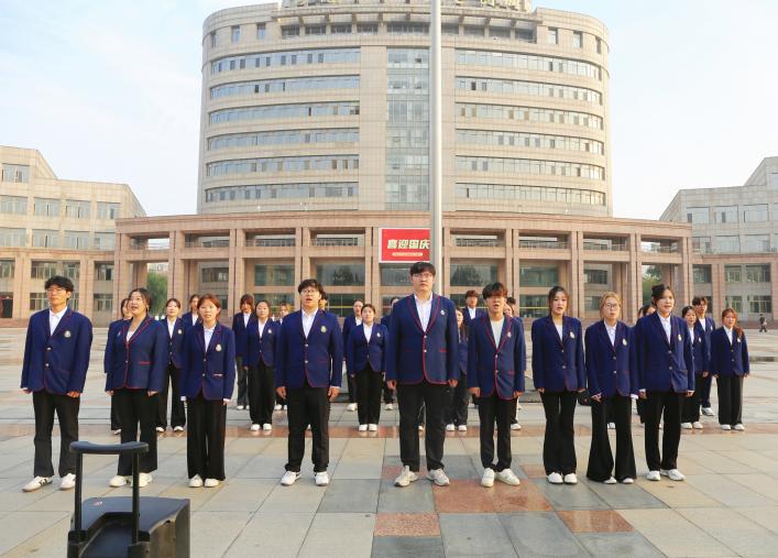 为热烈庆祝中华人民共和国成立76周年,9月29日7时,我校在综合办公楼前广场举行“青春奋进,强国有我”主题团日活动。党委委员、副校长曲相艳出席活动并讲话。校团委书记王盛楠主持活动。