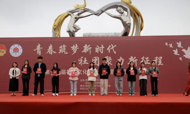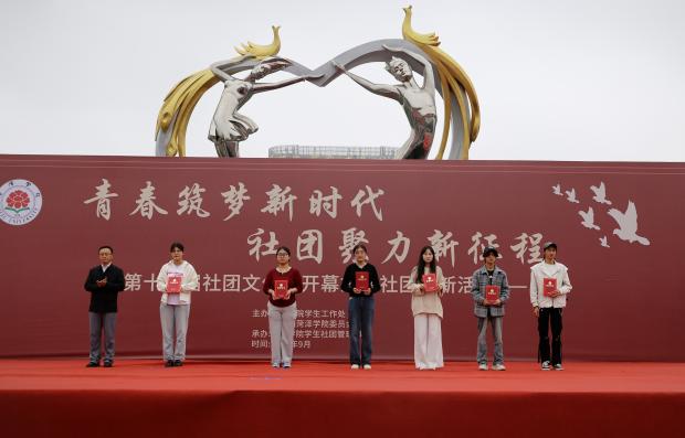 在颁奖环节,校党委委员、副校长曲相艳,党委委员、宣传部部长赵晓龙,学生工作处处长尹晓允,校团委书记王盛楠为相关学生社团颁发荣誉证书。