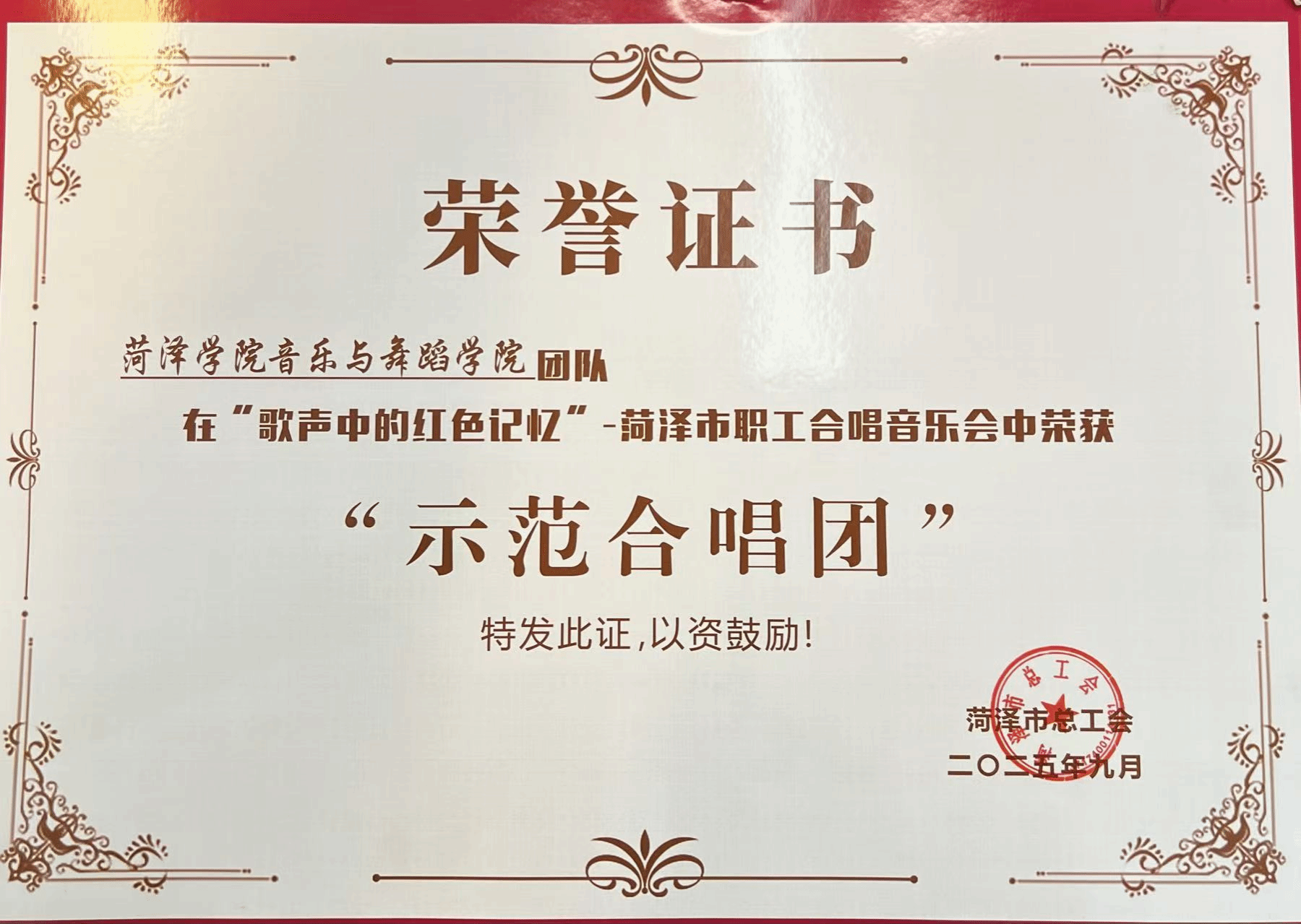 近日,由菏泽市总工会主办的“歌声中的红色记忆”职工合唱音乐会在菏泽大剧院举行。来自全市各条战线的多支职工合唱团齐聚一堂,用歌声重温红色经典,共同纪念中国人民抗日战争暨世界反法西斯战争胜利80周年。我校音乐与舞蹈学院职工合唱团参加此次音乐会,校党委副书记孟令美、工会主席许庆喜出席活动。