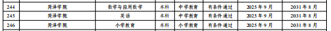 近日,教育部办公厅发布了《2025年通过普通高等学校师范类专业认证专业名单及中期审核专业名单的通知》(教师厅函〔2025〕18号),我校小学教育、英语和数学与应用数学3个专业通过教育部师范类专业第二级认证,认证结论有效期六年,自2025年9月起至2031年8月止。同时,生物科学专业通过中期审核,继续保持原认证有效期至2028年6月。至此,学校13个师范类专业中,7个专业通过认证,6个专业进入自评阶段,进入认证环节师范专业比例已达100%。