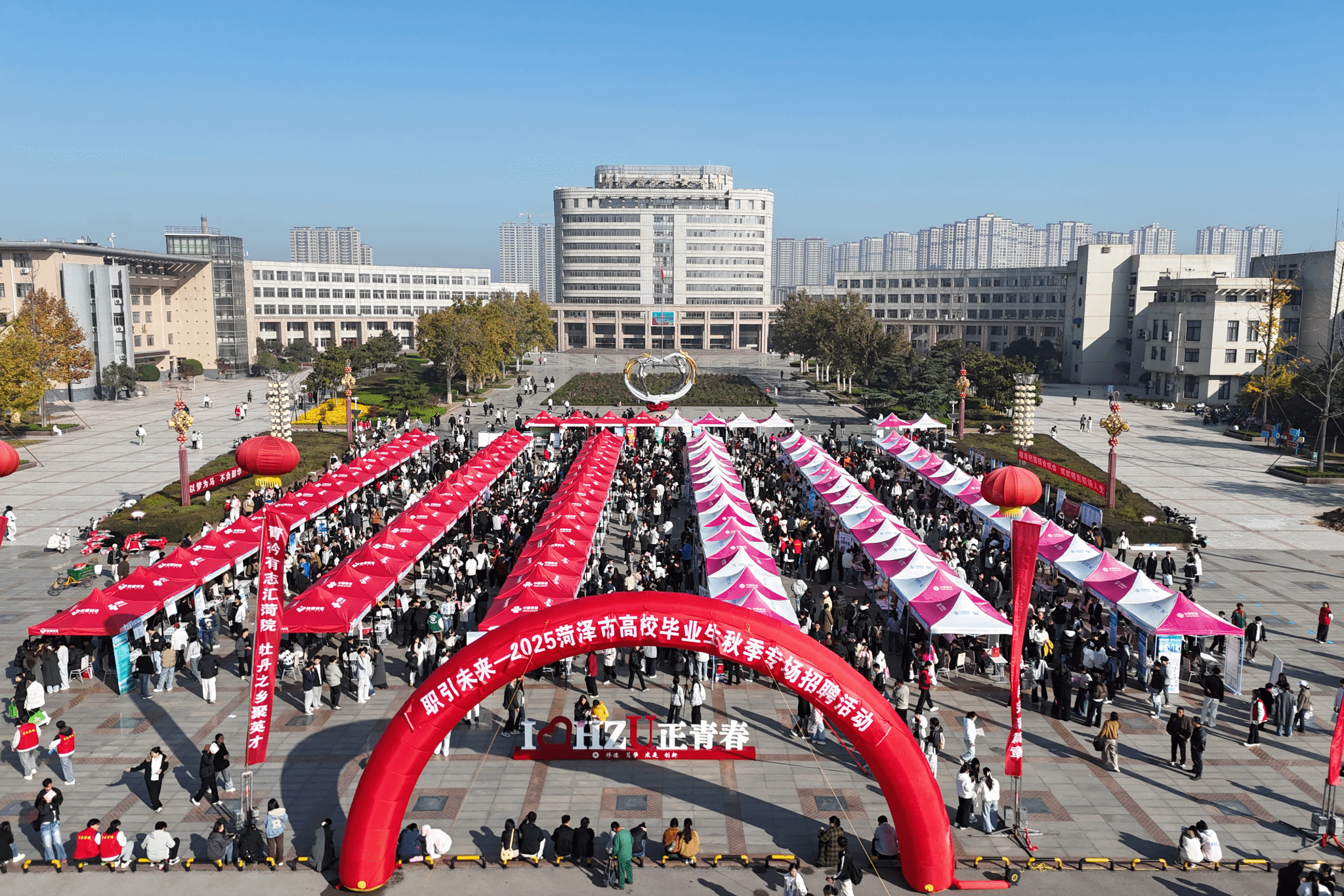 为强化就业服务,促进毕业生高质量充分就业,11月1日,由菏泽市人力资源和社会保障局、菏泽学院主办的2025菏泽市高校毕业生秋季专场招聘会在我校梦想广场举行。我校党委委员、副校长曲相艳,菏泽市公共就业和人才服务中心主任卞功茂到场指导工作。