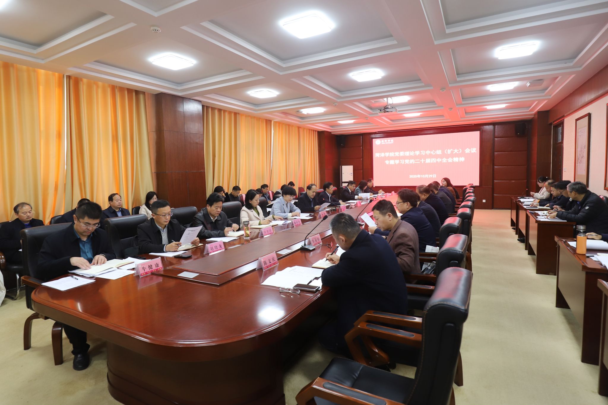 10月29日,学校党委理论学习中心组(扩大)会议在第一会议室进行集体学习,专题学习党的二十届四中全会精神。党委书记黄富峰同志主持学习并讲话。