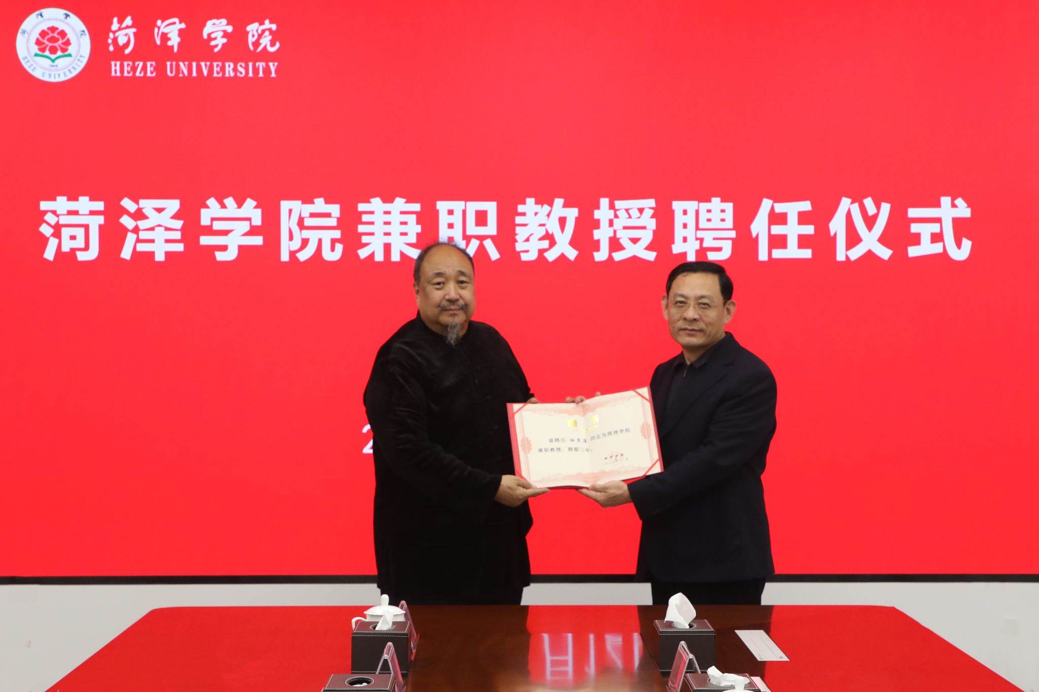 杜月涛在发言中感谢菏泽学院的信任,愿发挥自身专长,利用好学校提供的平台,积极参与美术与设计学院的人才培养、学科建设、学术研究等工作,为学校高质量发展贡献自己的力量。