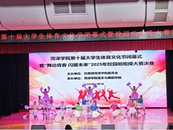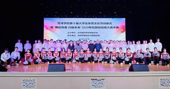 比赛中,各参赛队创意十足、亮点纷呈。高难度的托举动作如雏鹰展翅般彰显青春张力,巧妙融入学科元素的“电流式”队形模拟脉冲流转,队员们灵动的身姿在光影间跃动,将青春的炽热与力量和团队的默契与协作展现得淋漓尽致,现场掌声与喝彩声此起彼伏。经过激烈角逐,教师教育学院、体育与健康学院代表队荣获一等奖,郓城分校、政法学院、人文与新闻传播学院代表队荣获二等奖,农业与生物工程学院(牡丹学院)、药学院、外国语学院、单县分校、物理与电子工程学院代表队荣获三等奖。