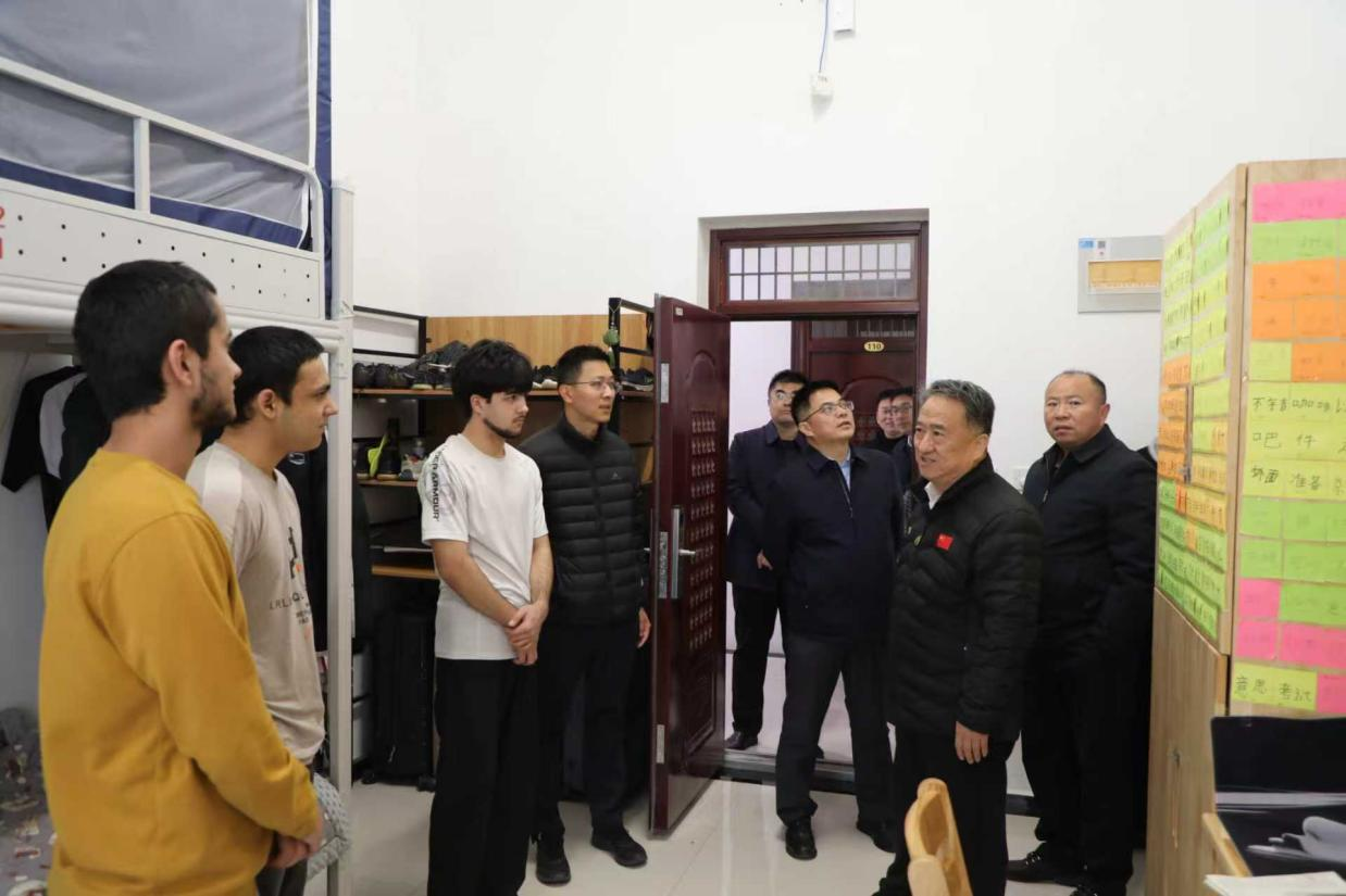 新春将至,暖意融融。2月14日上午,校党委副书记孟令美,党委委员、副校长闫伟带领相关部门负责人,看望慰问春节期间坚守岗位的后勤服务、安全保卫等值班值守工作人员,为大家送去新春慰问品和全校师生的诚挚问候与美好祝福。