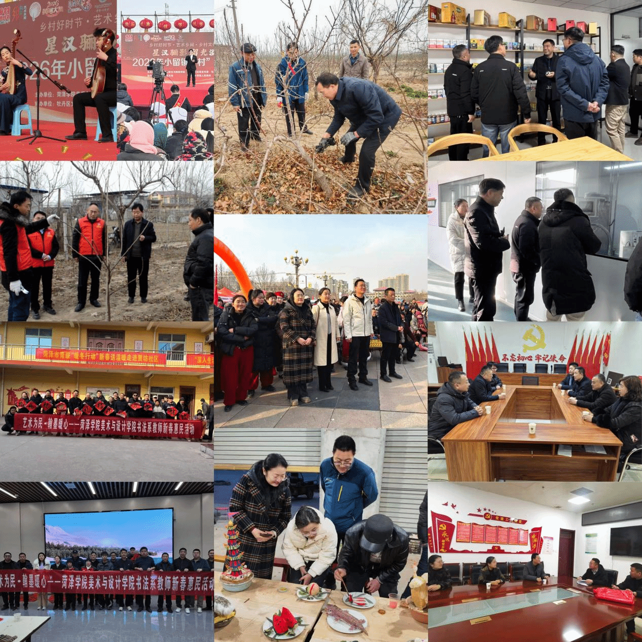 2月6日,马克思主义学院党委到菏泽市牡丹区张中村开展基层党建交流活动,双方就理论宣讲、党员教育培训等未来可能的合作方向进行了探讨。农业与生物工程学院(牡丹学院)深化产教融合,主动对接东明能量源、山东天九实业集团等企业,搭建校企协同育人新平台;组织教师团队深入社区、果园等开展春季果树修剪与病虫害防治工作,以科技之力助力果农增产增收。音乐与舞蹈学院文旅人才服务基层团队积极参与小留镇村晚、成武县四平调传承保护中心惠民演出,以文艺实践助力基层文化建设。美术与设计学院设计系专业团队入选2025年度文化和旅游人才到基层一线服务人选,寒假期间到曹县、成武县文化馆开展非遗保护对接调研;书法系牵头开展“艺术为民,翰墨暖心”新春惠民志愿服务活动,为居民书写春联、赠送福字。