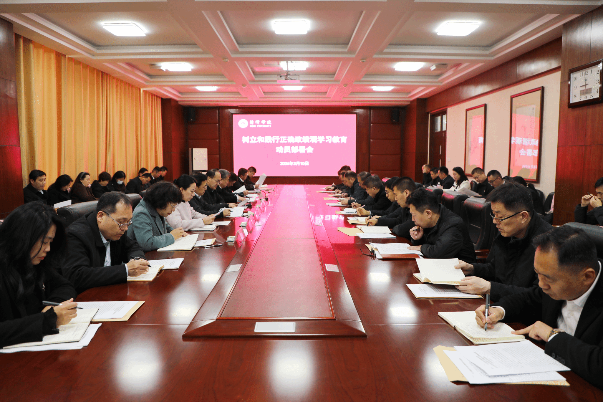 会议强调,要深入学习贯彻习近平总书记关于树立和践行正确政绩观学习教育的重要讲话和重要指示批示精神,深刻理解、准确把握、全面落实“立党为公、为民造福、科学决策、真抓实干”的总要求,坚持学查改一体推进,确保学有质量、查有力度、改有实效。一要坚持在深学细悟、增强自觉上下功夫见实效。深入学习贯彻习近平总书记关于树立和践行正确政绩观的重要论述,深刻把握正确政绩观的科学内涵、实践要求和核心要义,切实把学习成果转化为践行正确政绩观的思想自觉、政治自觉、行动自觉。二要坚持在刀刃向内、找准症结上下功夫见实效。坚持问题导向,对照习近平总书记重要论述,对照政绩观偏差主要问题清单,深入查摆政绩观方面存在的问题,深刻剖析正反面典型案例,加强示范引领和警示教育。三要坚持在整改整治、建章立制上下功夫见实效。突出问题导向,强化集中整治,把查摆出的问题整改与推动学校事业高质量发展紧密结合,及时完善规章制度,确保整改成效。四要坚持在问需于民、为民办事上下功夫见实效。真正把师生所思所想所盼融入学习教育全过程,坚持开门教育,主动接受监督,办好民生实事,化解信访问题,用心用情用力解决师生急难愁盼问题。