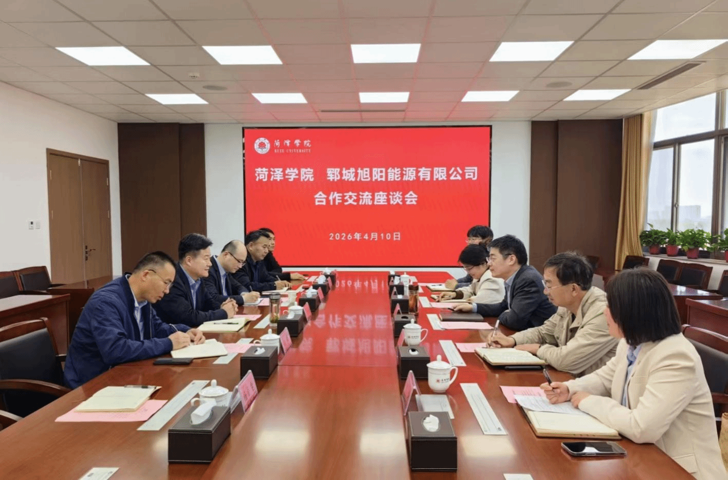 4月10日下午,郓城旭阳能源有限公司总经理于守立、副总经理王勇一行5人来校洽谈校企合作相关事宜。学校党委委员、副校长田智祥出席座谈会并讲话。