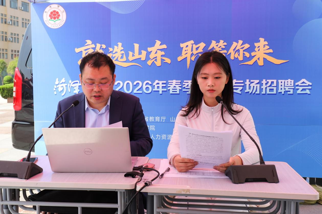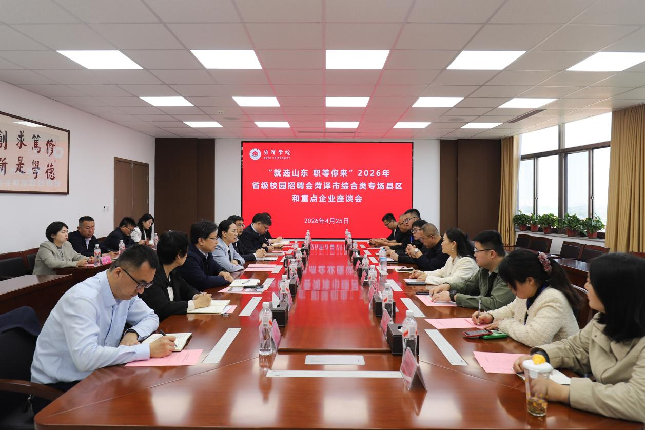 4月25日,由山东省教育厅、山东省人力资源和社会保障厅主办,菏泽学院承办,菏泽市人力资源和社会保障局、菏泽市教体局协办的“就选山东 职等你来”2026年省级校园招聘会菏泽市综合类专场在我校综合办公楼前广场举行。我校党委书记黄富峰,党委委员、副校长富元斋、曲相艳,菏泽市人力资源和社会保障局党组书记、局长梁惠民,市委组织部副部长、市招才引智服务中心主任孙飞,市教育和体育局党组成员、副局长王奉勇深入招聘会现场调研指导。