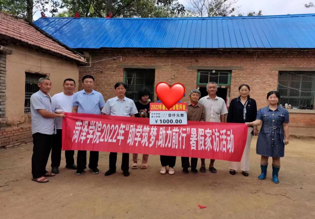 为深入宣传贯彻高校家庭经济困难学生的资助政策,全面落实精准资助,提高资助育人成效,增强思想政治教育工作的针对性、时效性和主动性,今年暑假,我校组织开展“助学筑梦,助力前行”家访活动。学生工作处处长杨红兵、各二级学院(分校)负责人及相关同志分别赴菏泽市各县区、聊城市、济宁市等地对我校97名家庭经济困难学生进行家访慰问,为学生送去米、面、油等慰问物资和慰问金。
