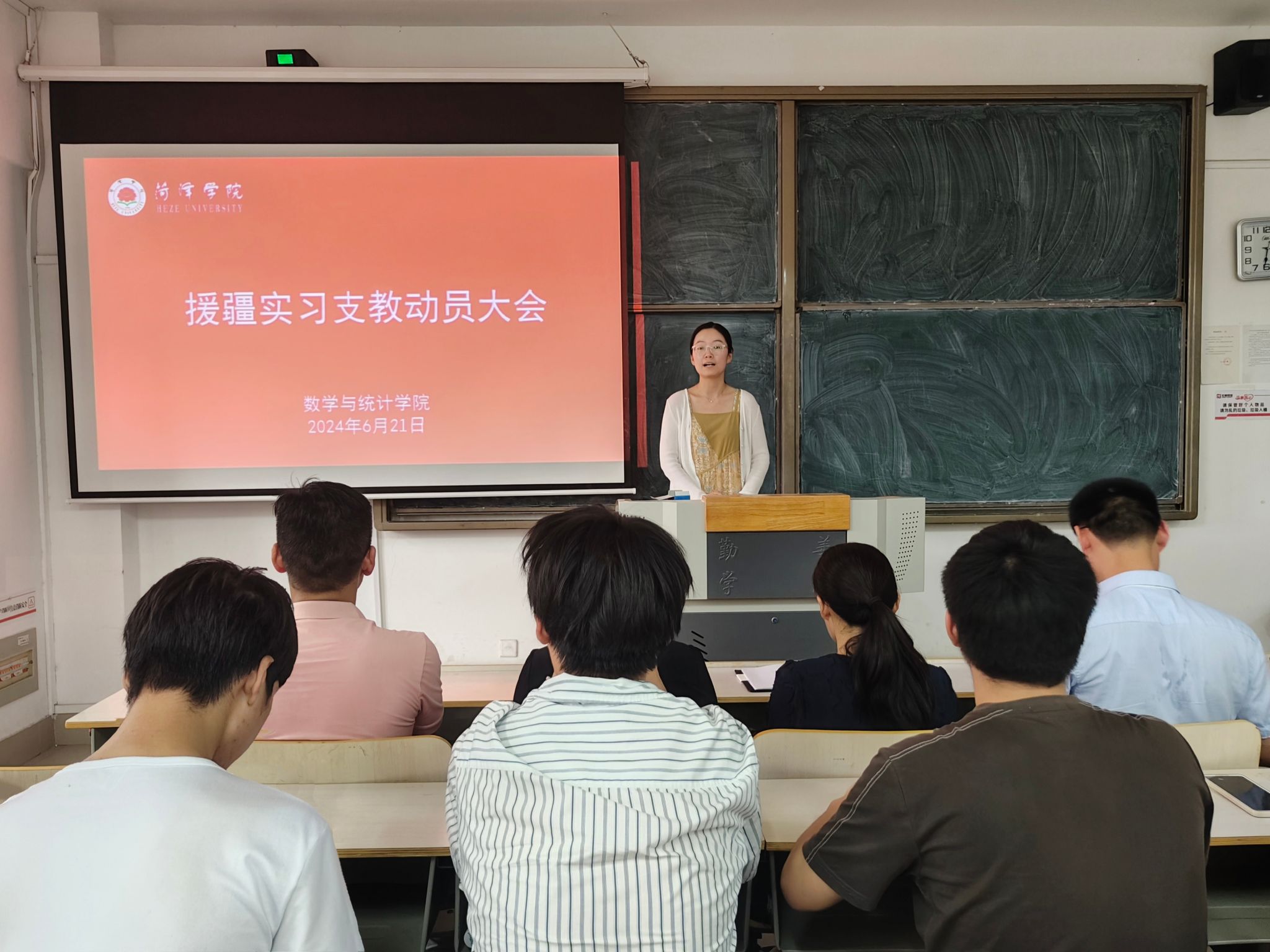 本次援疆实习支教动员大会的举行,进一步加深了学生对援疆实习支教工作的认识和理解,激发了学生的支教热情,坚定了学生为建设美丽边疆贡献青春力量的信心和决心,为下一步数学与统计学院开展师范生实习支教工作打下坚实基础。