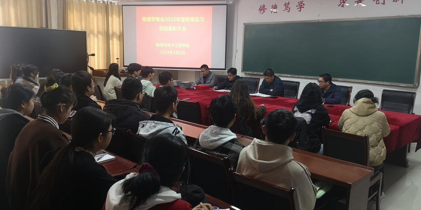 3月2日下午,物理与电子工程学院在综合实验楼W207召开2020级物理学专业教育实习总结暨优秀指导教师、优秀实习生表彰大会,同时安排部署2021级物理学专业教育实习工作。物理与电子工程学院党委副书记祝清森,副院长张运海,教育实习指导教师,2020级、2021级物理学专业学生参加了会议。