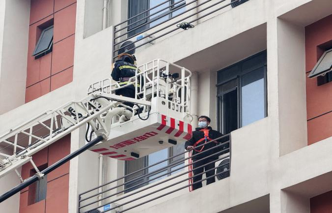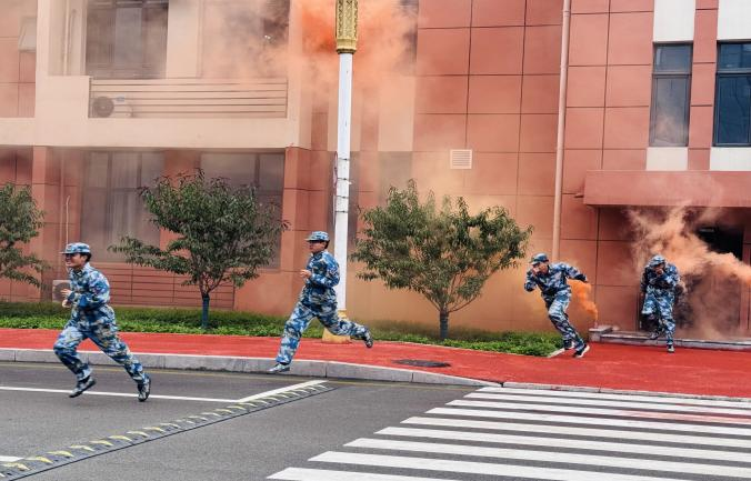安全保卫处工作人员向广大师生员工简要讲解了火灾逃生的基本常识与注意事项。随后,模拟火灾警报声随即响起,各楼层同步释放烟雾弹,学生公寓内烟雾迅速弥漫。宿管员第一时间拨打119火警电话,在安全员的指引下,新生们用袖口或湿纸巾捂住口鼻,保持弯腰低姿,从各楼层有序地撤离至楼前空旷集合区。菏泽市消防队接到学校报警后,迅速安排两辆消防车赶赴现场开展灭火作业,并成功救出被困学生。救援结束后,市消防队消防官兵和学校安保工作人员对参演师生员工进行了安全教育,并详细讲解灭火器材的操作步骤。师生员工进行实操体验,增强了直观感受,提升了基本灭火技能。
