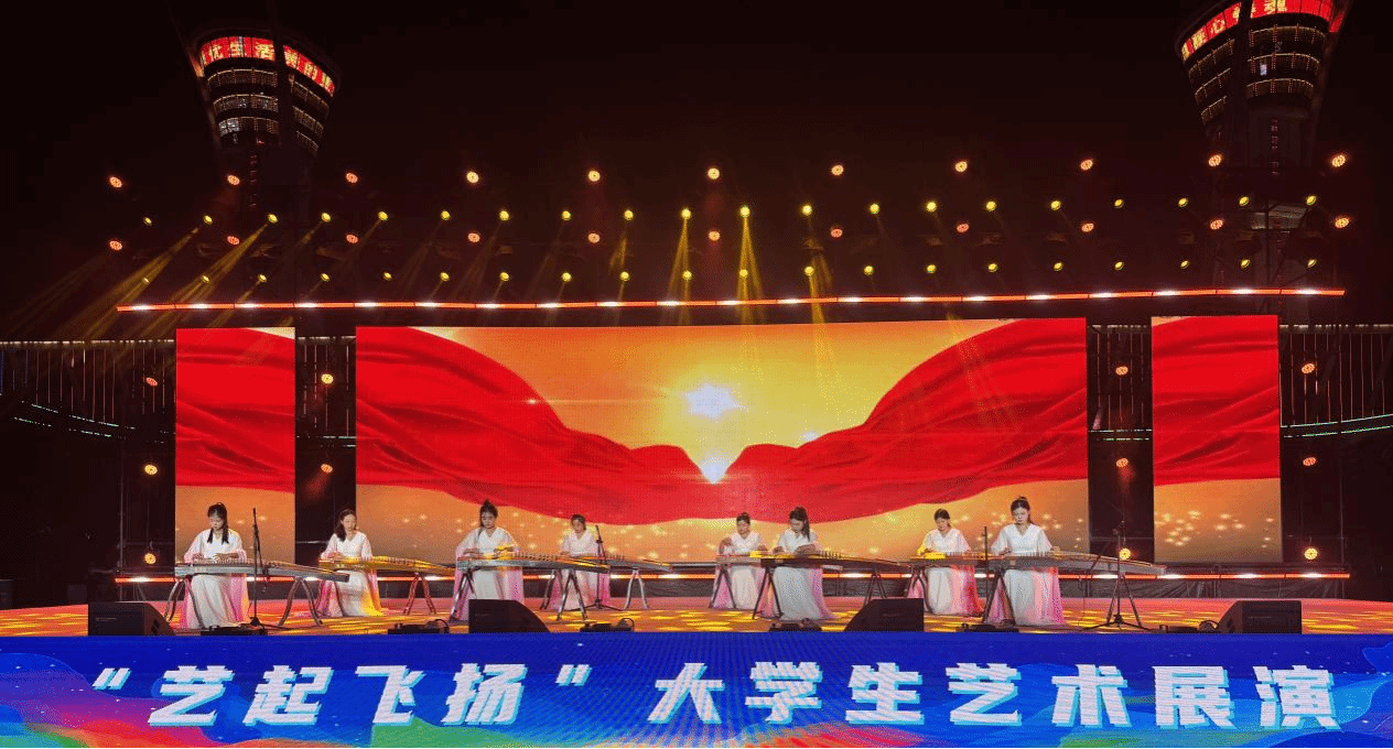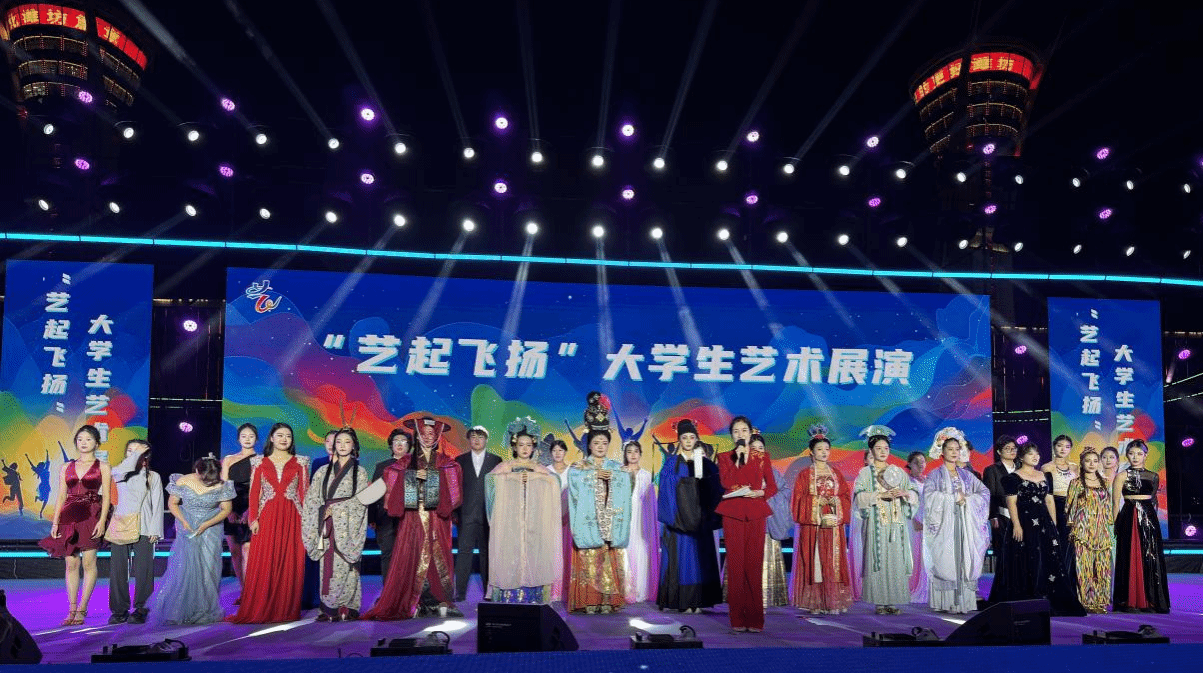 金秋送爽,艺彩飞扬。为庆祝中华人民共和国成立76周年,近日,由潍坊市文化和旅游局等单位主办的“艺起飞扬”大学生艺术展演活动在潍坊市人民广场举行。我校音乐与舞蹈学院选派20余名学生,携精心编排的11个节目参演,以精湛的艺术技艺和饱满的青春热情,为现场观众带来了一场高水平的视听盛宴。