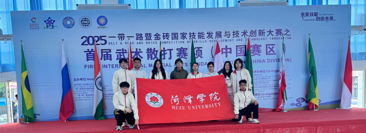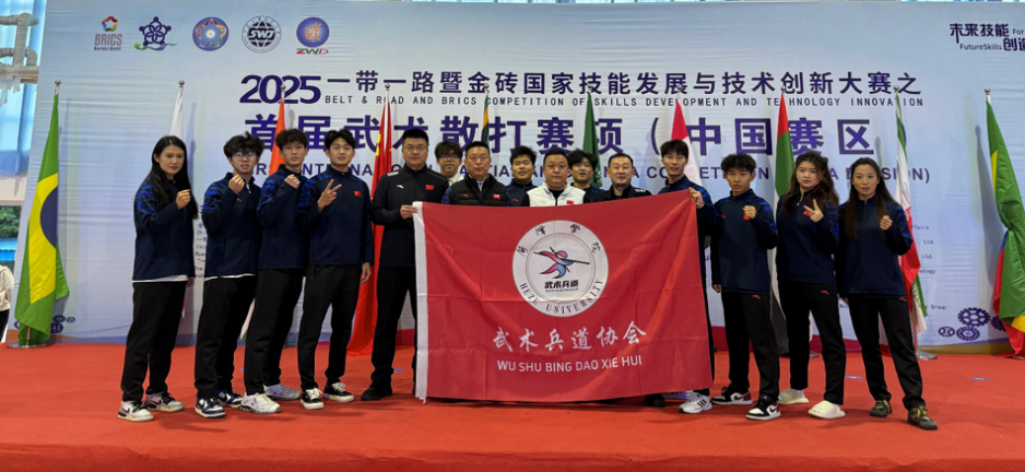 10月19—25日,2025“一带一路”暨金砖国家技能发展与技术创新大赛首届武术散打项目在山东威海举行。本次赛事由山东外事职业大学承办,来自“一带一路”及金砖国家沿线多所高校和训练单位的优秀选手齐聚一堂,竞技交流、以武会友。我校体育与健康学院代表队获得金牌19枚、银牌10枚、铜牌8枚,教师崔文学、李龙飞获得“优秀教练员”称号。