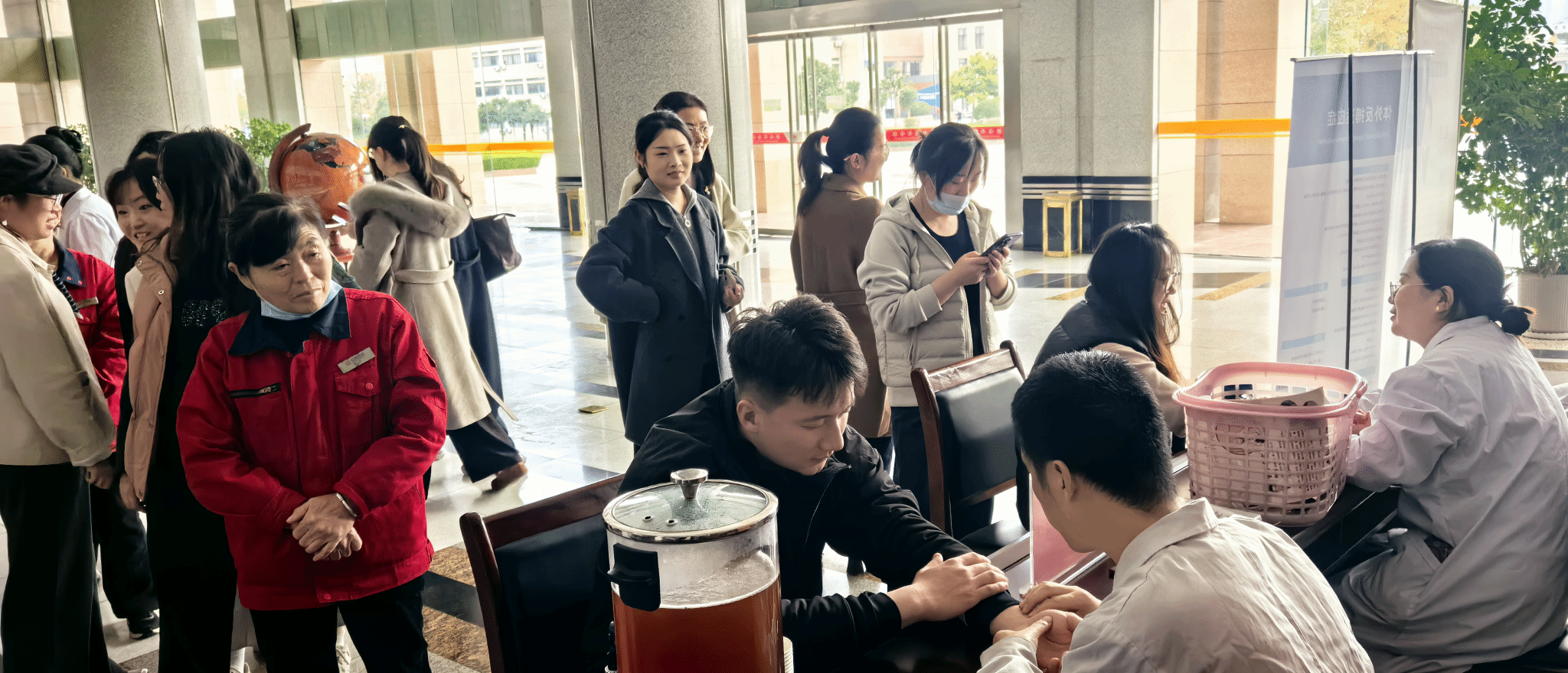 为切实关爱教职工身心健康,营造健康和谐的校园氛围,11月12日下午,我校工会特邀菏泽市牡丹区中医医院专家团队,在综合办公楼一楼、六楼大厅开展中医健康义诊活动,为广大教职工送上“零距离”的中医健康服务,吸引了众多教职工踊跃参与。