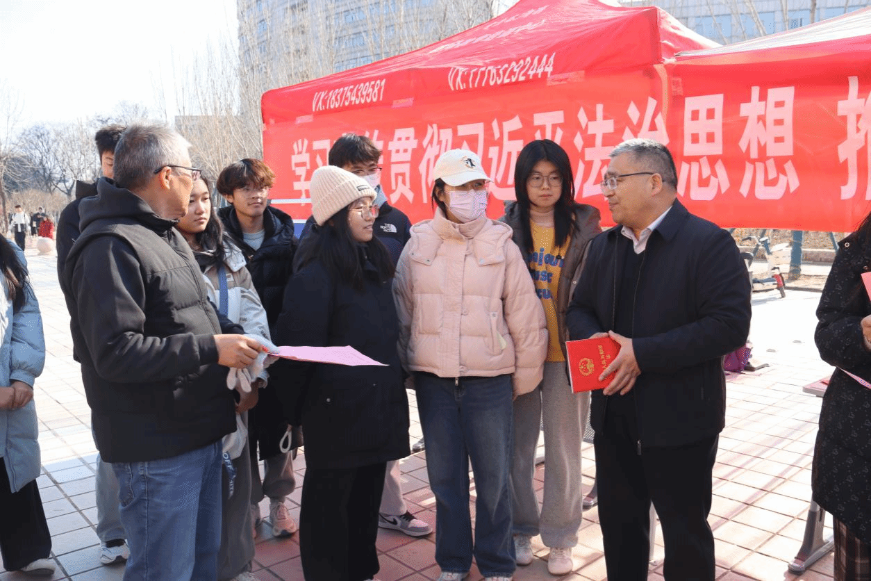 举行广场普法宣传,提升普法实效。政法学院在雅苑餐厅门前广场组织开展“宪法在身边”普法宣传活动。活动现场,政法学院普法社团设立了专门的普法宣传展台,悬挂主题条幅,向广大师生发放宪法知识宣传资料,并提供法律咨询服务,用生动易懂的方式讲解宪法知识。政法学院领导班子成员到场指导工作,他们化身普法宣传员,与过往师生进行交流。此次活动将宪法宣传融入校园生活,增强了普法教育的针对性和吸引力,使“宪法就在身边”的观念深入人心。