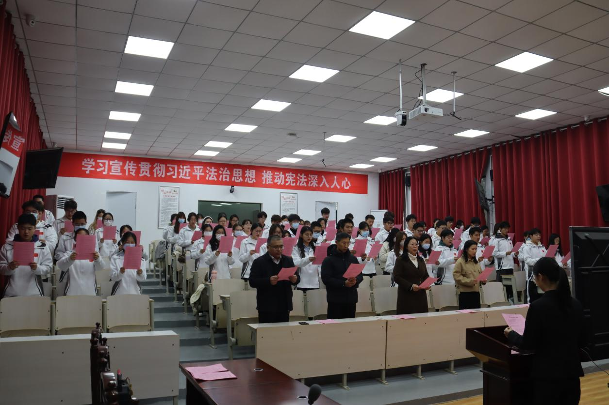 为深入学习贯彻习近平法治思想,切实弘扬宪法精神,维护宪法权威,12月4日,在我国第十二个国家宪法日来临之际,我校政法学院紧紧围绕“学习宣传贯彻习近平法治思想,推动宪法深入人心”主题,组织开展了形式多样的宣传教育活动,在校园内营造了尊崇宪法、学习宪法、遵守宪法、维护宪法、运用宪法的良好氛围。