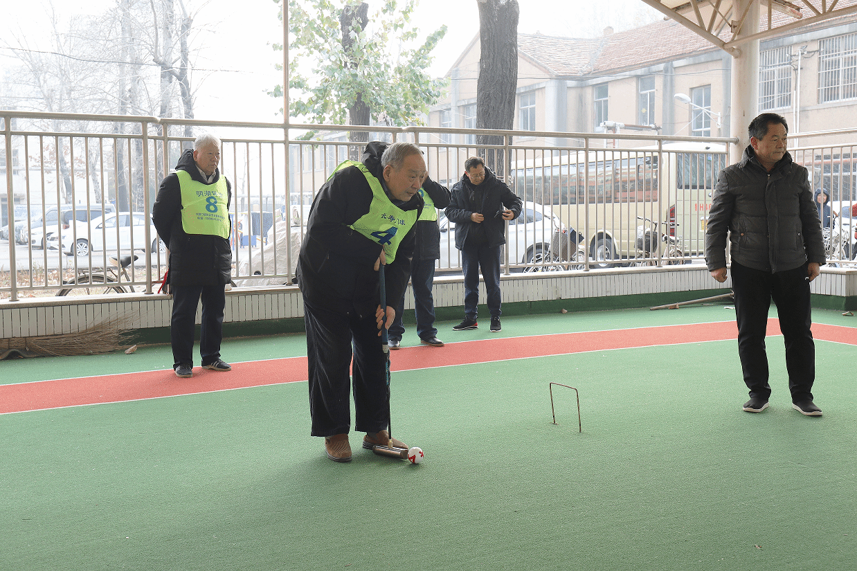 为丰富离退休干部的文体活动,增进校际交流,12月18日上午,曲阜师范大学离退休工作处处长石会学带领曲阜师范大学老年门球队来到我校,在我校老干部门球场开展门球友谊交流赛。