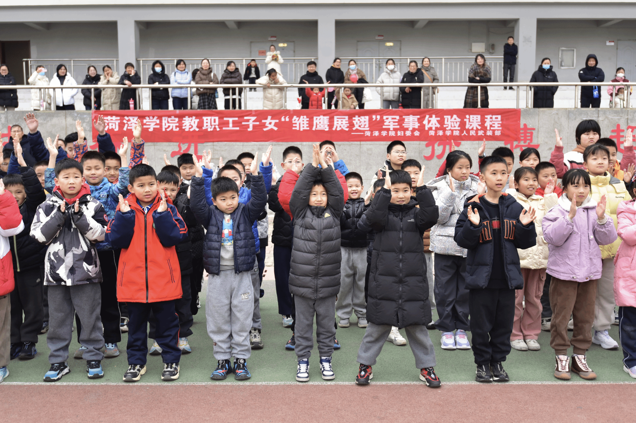 12月20日下午,我校田径场上口号嘹亮、朝气蓬勃,由校妇委会与校人民武装部联合举办的教职工子女“雏鹰展翅”军事体验活动正式拉开帷幕。80余名教职工子女化身“小小战士”,通过沉浸式体验深入感受军营氛围,在活动中磨炼意志、塑造品格。