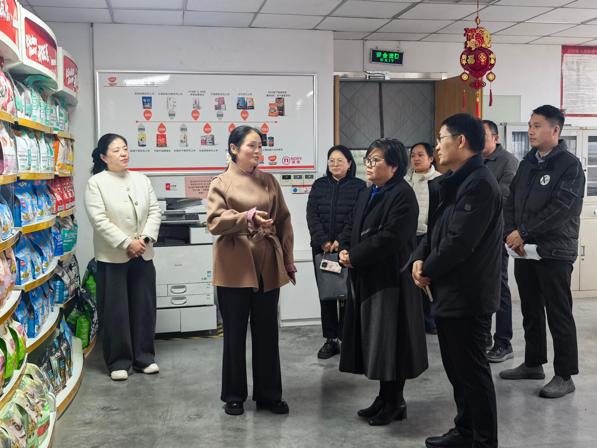 药学院、商学院一行实地考察了企业实验室、宠物粮成品展示区及生产工厂。